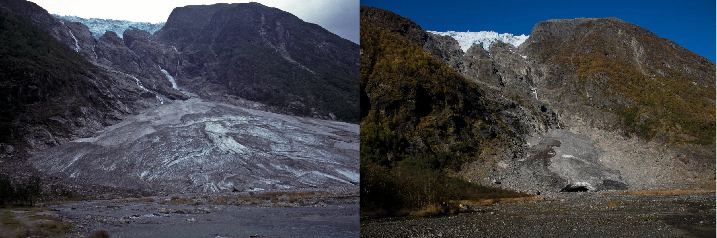 Bøyabreen 1997 (foto: Stefan Winkler) og 2016 (foto: Pål Gran Kielland).